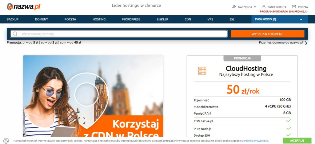 Nazwa.pl to jedna z najpopularniejszych firm w Polsce oferująca usługi hostingowe i rejestrację domen. Każdy kto zakładał własną stronę na pewno spotkał się nazwa.pl. Firma będąc na rynku od 1997r. stała się bardzo rozpoznawalna co ułatwia promowanie produktów nazwa.pl