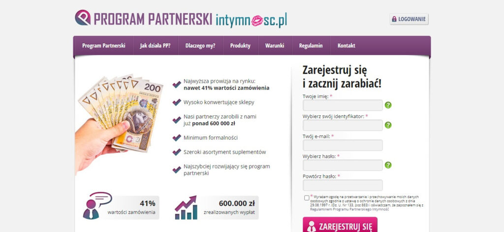 Program partnerski intymność oferuje produkty z kategorii erotyka. Prowizje w zależności od produktu naliczane są w wysokości od 15% do 41%