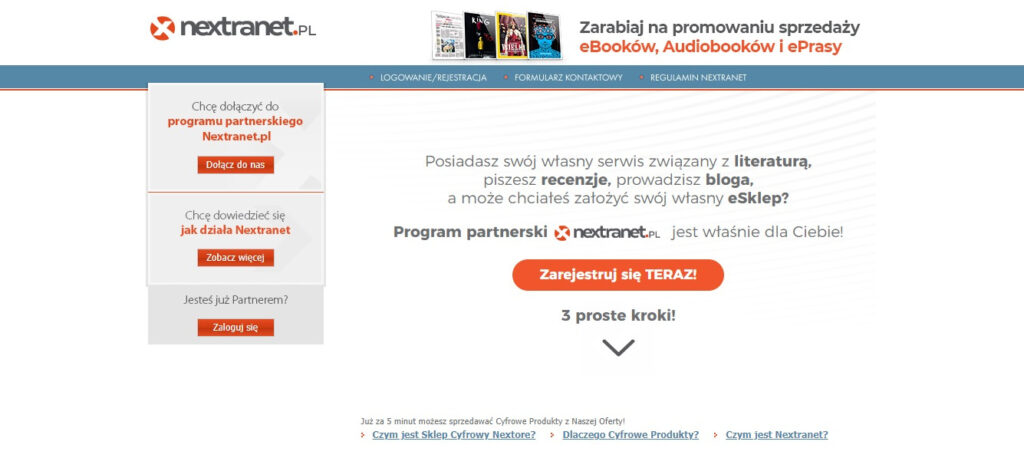Program Nextranet oferuję produkty z kategorii ebooki, audiobooki, ePrasę. Prowizje wynoszą 10%