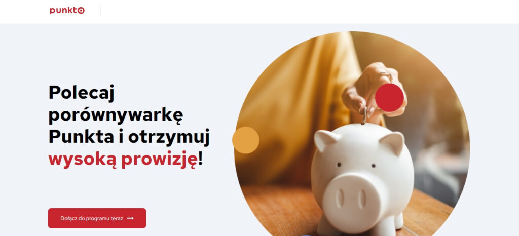 Program partnerski Punkta oferuje produkty z kategorii ubezpieczenia. Posiadasz stronę, bloga konta w mediach społecznościowych możesz uzyskać dodatkowy dochód promując porównywarkę ubezpieczeń. A może jesteś agentem ubezpieczeniowym – dzięki współpracy z Punkta możesz wzbogacić swoją ofertę o porównywarkę OC/AC i pozyskać wielu nowych klientów.